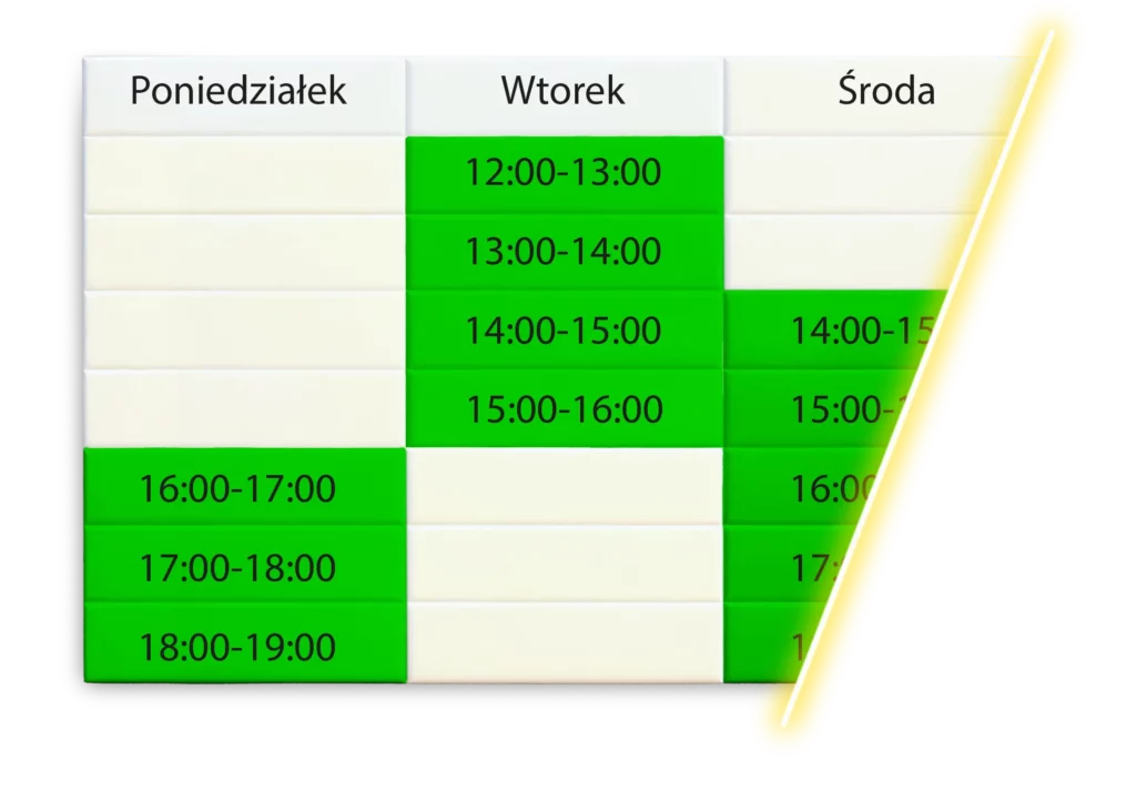 2. Wskazujesz przedział czasu, w którym mogę przyjechać po rower.